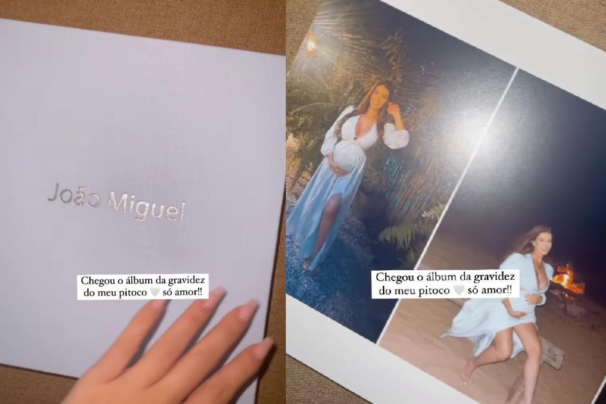 Com o álbum em mãos, Maria Lina mostrou algumas fotos aos seguidores do Instagram. No vídeo ela escreveu: “Chegou o álbum da gravidez do meu pitoco. Só amor!”. Ela tirou uma foto da última pagina do álbum e escreveu: “Ao lado do melhor. Te amo mais que a vida, filho”.