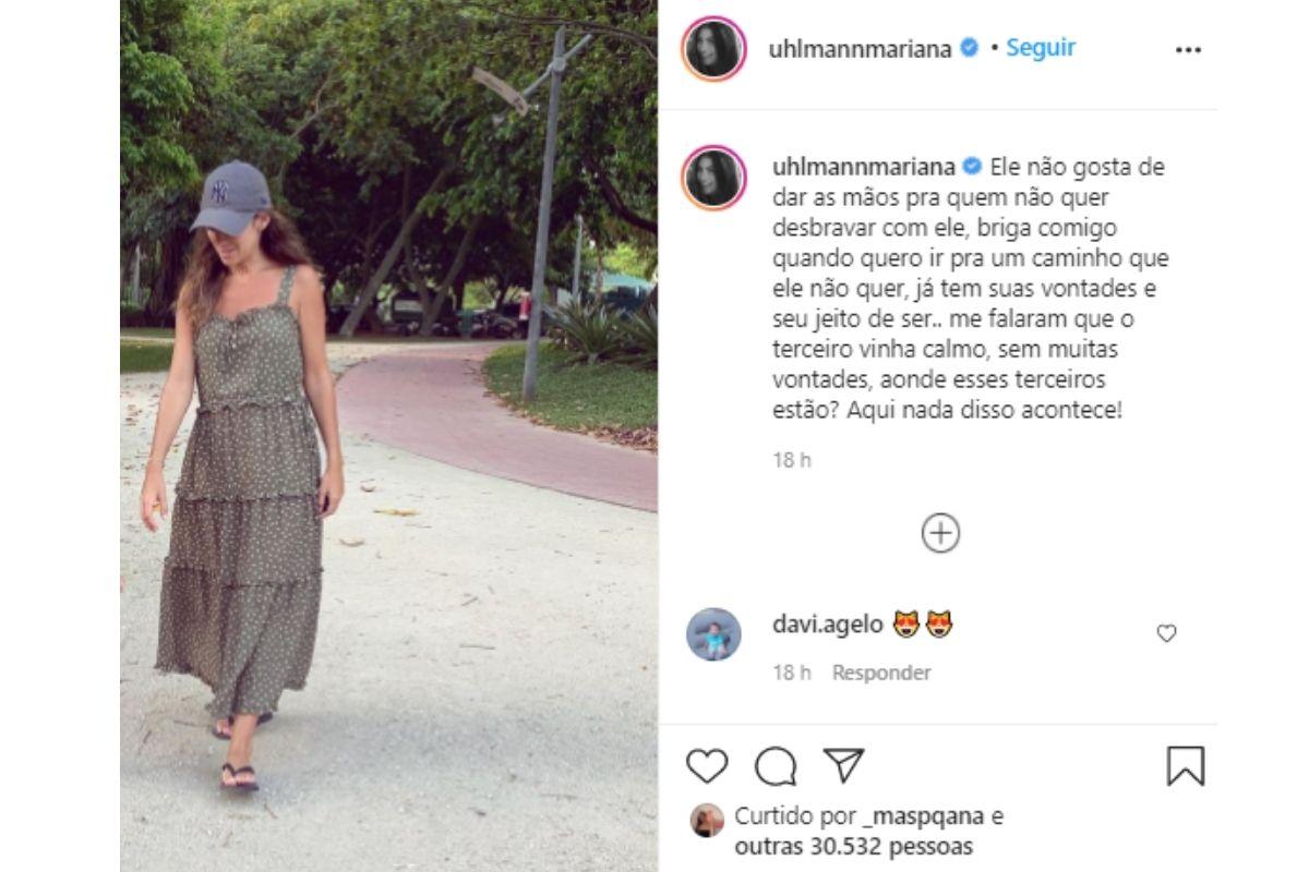 No post, Mariana aparece com o caçula em um parque. “Ele não gosta de dar as mãos pra quem não quer desbravar com ele, briga comigo quando quero ir pra um caminho que ele não quer, já tem suas vontades e seu jeito de ser.. me falaram que o terceiro vinha calmo, sem muitas vontades, aonde esses terceiros estão? Aqui nada disso acontece!”, escreveu a jornalista, falando sobre a personalidade do filho.