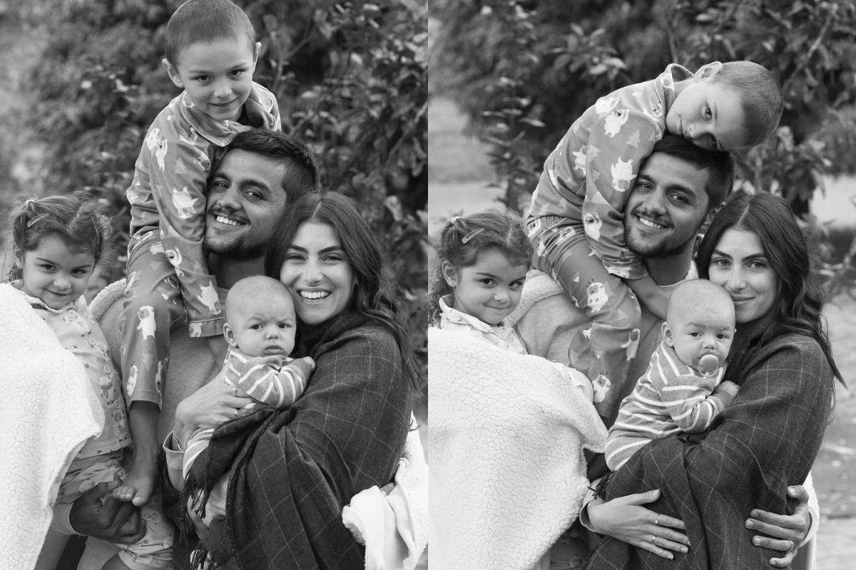 O clique, lindo e inteiro em preto e branco, mostra os cinco todos juntos e abraçados. Na legenda, Mariana se declarou: “Só de olhar essa foto me falta ar, não tem nada melhor!”. Felipe, nos comentários, acrescentou: “Tudo uma coisa só”.