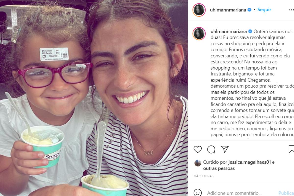 Foi através de um post no Instagram que Mariana compartilhou um texto contando sobre a relação dela com a menina. “Ontem saímos nos duas! Eu precisava resolver algumas coisas no shopping e pedi pra ela ir comigo! Fomos escutando música, conversando, e eu fui vendo como ela está crescendo!”, começou escrevendo a mãe. Para ver este conteúdo, clique aqui!