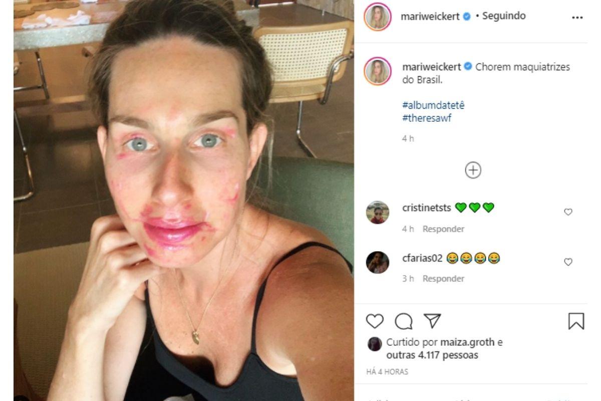 Mariana Weickert divertiu os seguidores do Instagram nesta quinta-feira, 12 de novembro, ao compartilhar um momento super especial ao lado da filha, Theresa. A modelo publicou um clique onde ela aparece com uma “maquiagem” feita pela menina, com os olhos, as bochechas e a boca rabiscadas com batom. “Chorem maquiatrizes do Brasil”, brincou a famosa ao publicar a imagem. Nos stories, a famosa publicou os momentos em que a criança a maquiou.