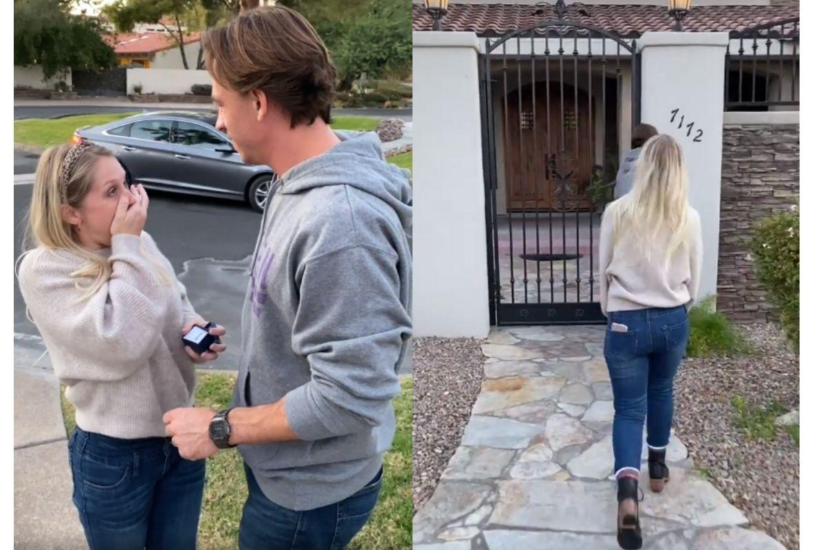 Ao abrir, ela se depara com a embalagem de um iPhone. Após abrir a caixa, vê outra caixa, ainda menor, dentro. Até finalmente encontrar uma caixa bem pequena. Ele, então, pede que ela espere para abrí-la. Enquanto isso, segue mostrando alguns cartões sobre o casal e como ele a ama. “Você sabe onde estamos?”, pergunta. “Por que estamos aqui?”, diz ela, percebendo estar na frente da casa que havia gostado tempos atrás. “Está preparada? Saia do carro”, completa o homem. Os dois saem do carro enquanto uma terceira pessoa segue filmando a reação dela. Ele, então, pede para que ela abra a última caixa. Ao abrir, se depara com a chave da casa que os dois tanto sonharam!