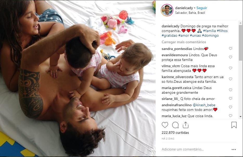 Daniel escreveu na legenda: “Domingo de prega na melhor companhia”. A cantora não perdeu tempo e comentou na foto do marido: “Os balãozin de oxigênio da mamãe” com vários emojis de coração.