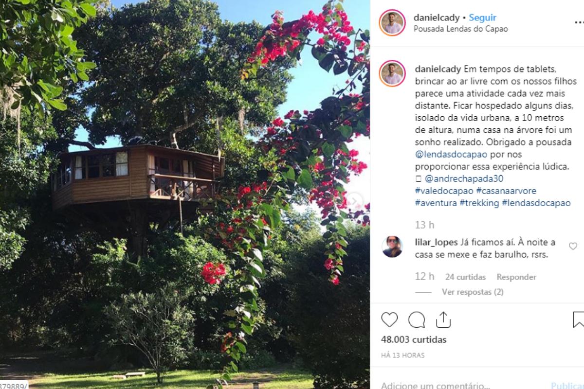Rodeado de muito verde e junto com a natureza, o local foi mostrado por Daniel nas redes sociais. A pousada chama Lendas do Capão e fica na Chapada Diamantina. A casa foi feita no topo de uma árvore jaqueira centenária e conta com uma vista incrível de 360º. Nada mal, né?