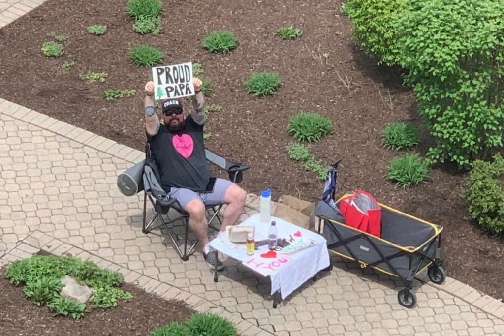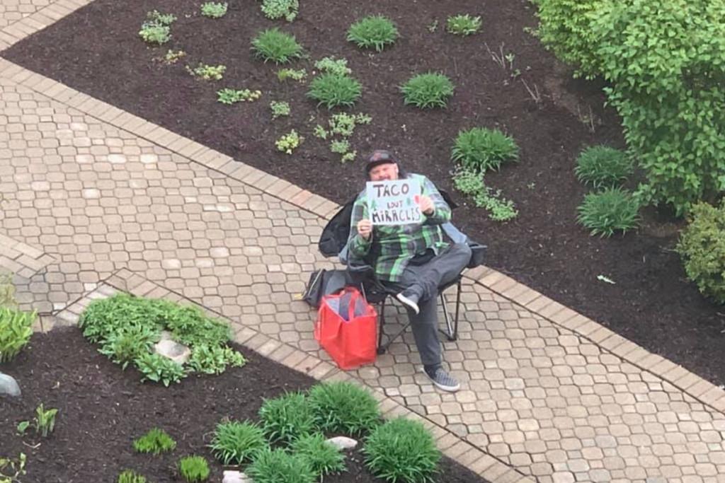 Por conta da pandemia de coronavírus, a jovem não pode receber visitas, mas o marido fez questão de não deixá-la sem contato. Bob Conlin começou a aparecer do lado de fora do hospital para estar próximo de Shona.