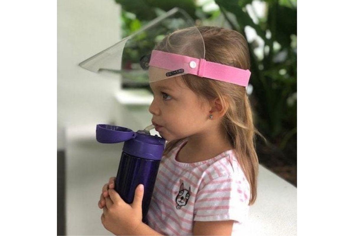 As coberturas de tecido para o rosto têm algumas desvantagens: são quentes e desconfortáveis, não cobrem os olhos e a maioria das crianças não gosta de usá-las. É por isso que alguns pais estão optando por protetores faciais. Essas barreiras de plástico cobrem todo o rosto (incluindo os olhos) com uma barreira transparente.