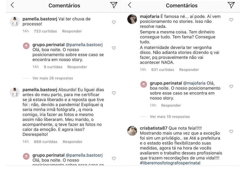 Mães e gestantes haviam se manifestado no comunicado feito pelo Grupo Perinatal na rede social. “Absurdo! Eu liguei dias antes do meu parto, para me certificar se já estava liberado e a reposta que tive foi: Não, devido a pandemia! Expliquei que seria minha irmã fotógrafa, que mora comigo, iria fazer as fotos e mesmo assim não liberaram. Meu marido, o acompanhante, que teve fazer as fotos no calor da emoção. E agora isso? Desrespeito!”, comentou uma.