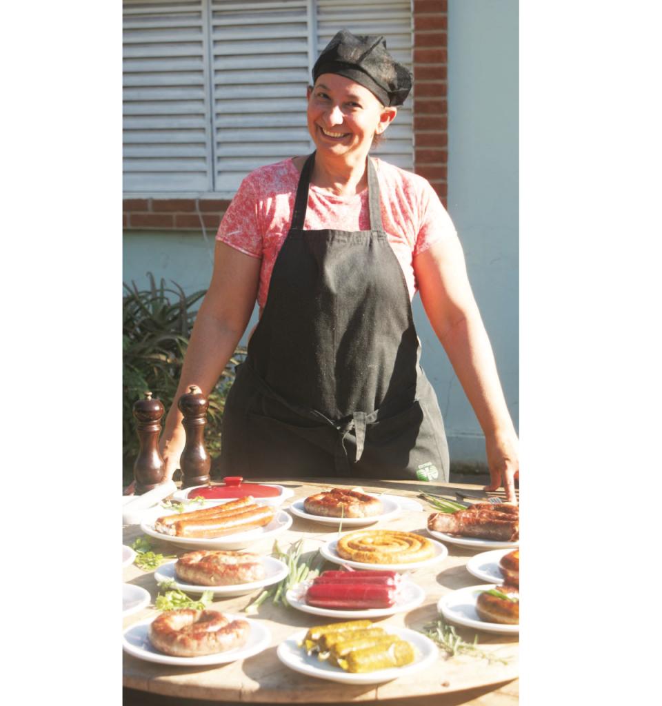 Em 2016, as linguiças que levávamos nos churrascos com os amigos, acabou se transformando no meu trabalho. A princípio atendia meus vizinhos, amigos próximos e o círculo foi aumentando. Meus filhos e meu esposo me incentivam e me ajudam a desenvolver produtos. Fiz alguns cursos, me aprimorei e assim me tornei uma Charcuteira – pessoa que produz salsichas, linguiças, defumados e maturados artesanalmente.
