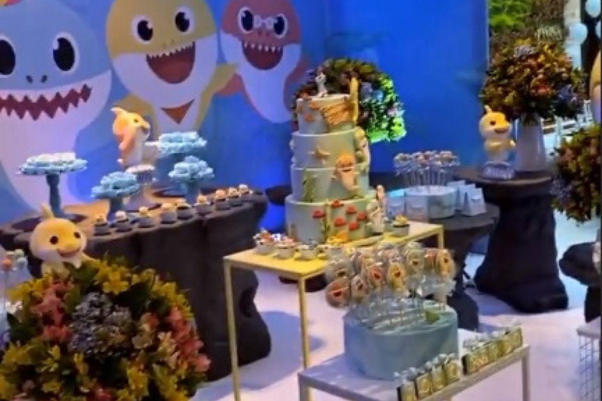O tema escolhido foi Baby Shark e a tarefa de construir um ambiente mágico com os personagens do desenho ficou para a decoradora Andréa Guimarães. Conhecida por decorar festas de famosos, Andréa já organizou as comemorações dos filhos das apresentadoras Ticiane Pinheiro e Ana Hickmann, da cantora Ivete Sangalo, entre outros.
