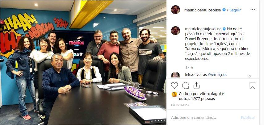 “Na noite passada, o diretor cinematográfico Daniel Rezende discorreu sobre o projeto ‘Lições’, com a Turma da Mônica, sequência do filme ‘Laços’, que ultrapassou 2 milhões de espectadores”, disse Maurício na legenda da publicação.