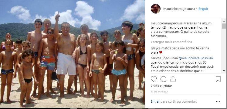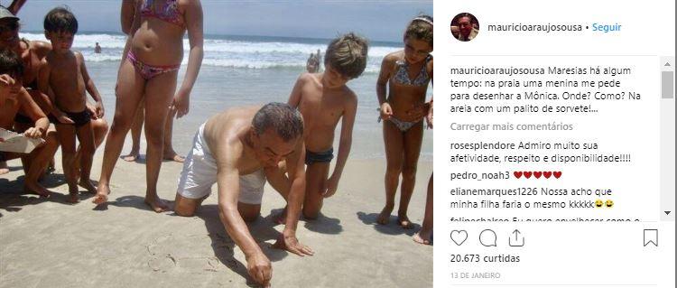 Uma criança, muito fã de Maurício, pediu que ele desenhasse a Mônica na praia. Maurício usou um palito de sorvete para realizar o desejo da fã, desenhando sua personagem mais famosa na areia. O cartunista usou seu Instagram para divulgar a história.