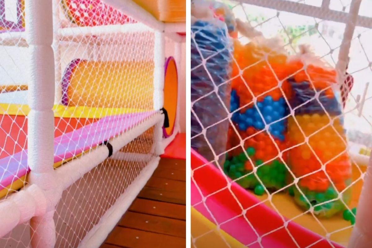 Nas imagens, publicadas nos stories do Instagram, é possível ver uma estrutura que ocupada a sala inteira, com piscina de bolinha, túneis, redes, escorregador e bolas. “Mandei fazer um brinquedão de shopping para a Sophia. Ela ainda não sabe, porque é uma surpresa, mas tem um cômodo gigantesco da casa onde temos um brinquedo de shopping. A gente não foi criança, mas pode ser agora”, disse a influenciadora.