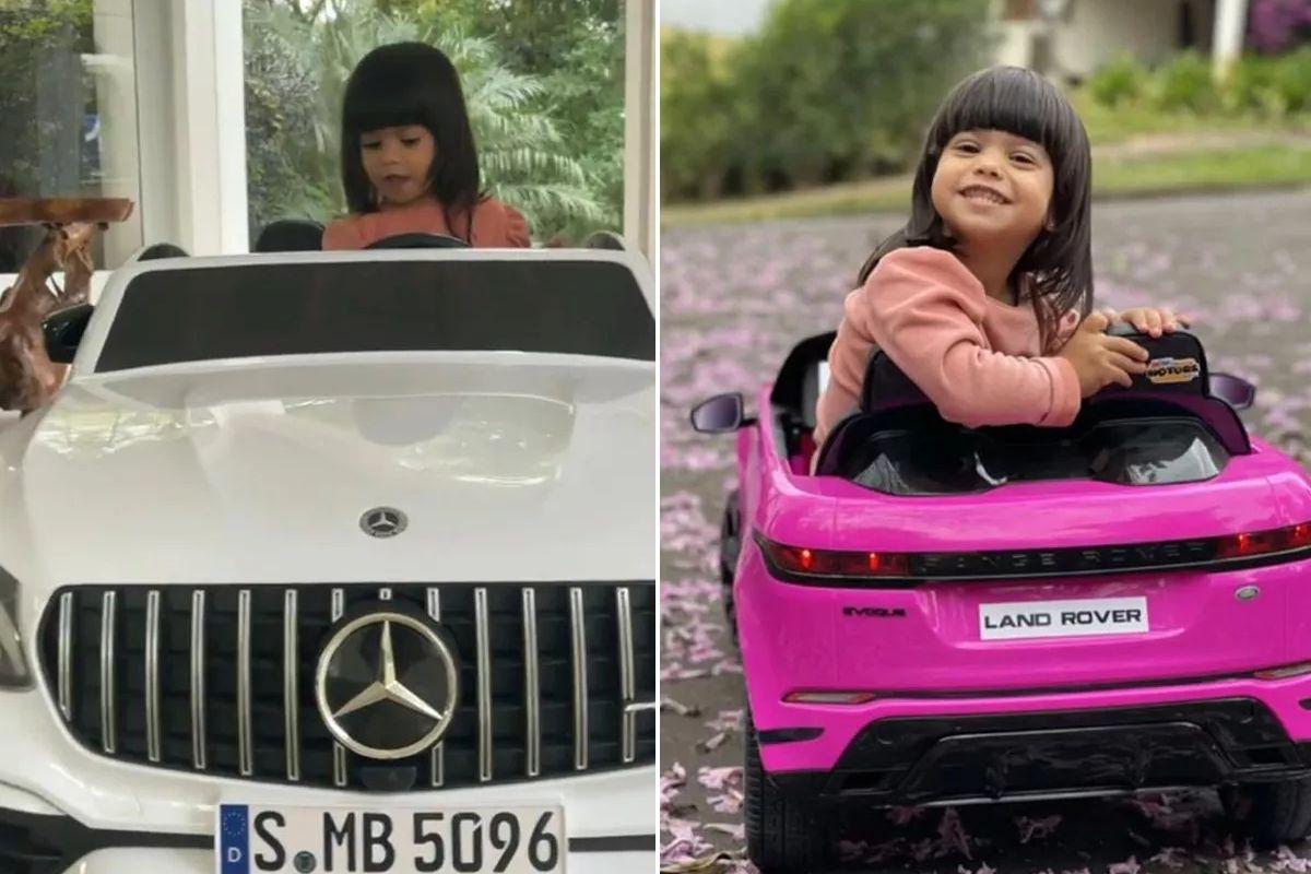 No site da marca, os miniveículos podem ser encontrados por valores bem altos. Enquanto a mini Mercedes GLC 63S – 12V custa R$ 4.499, a mini Range Rover Evoque Nova custa R$ 3.599. A influencer gastou R$ 8.098, no total, com os presentes para a filha.