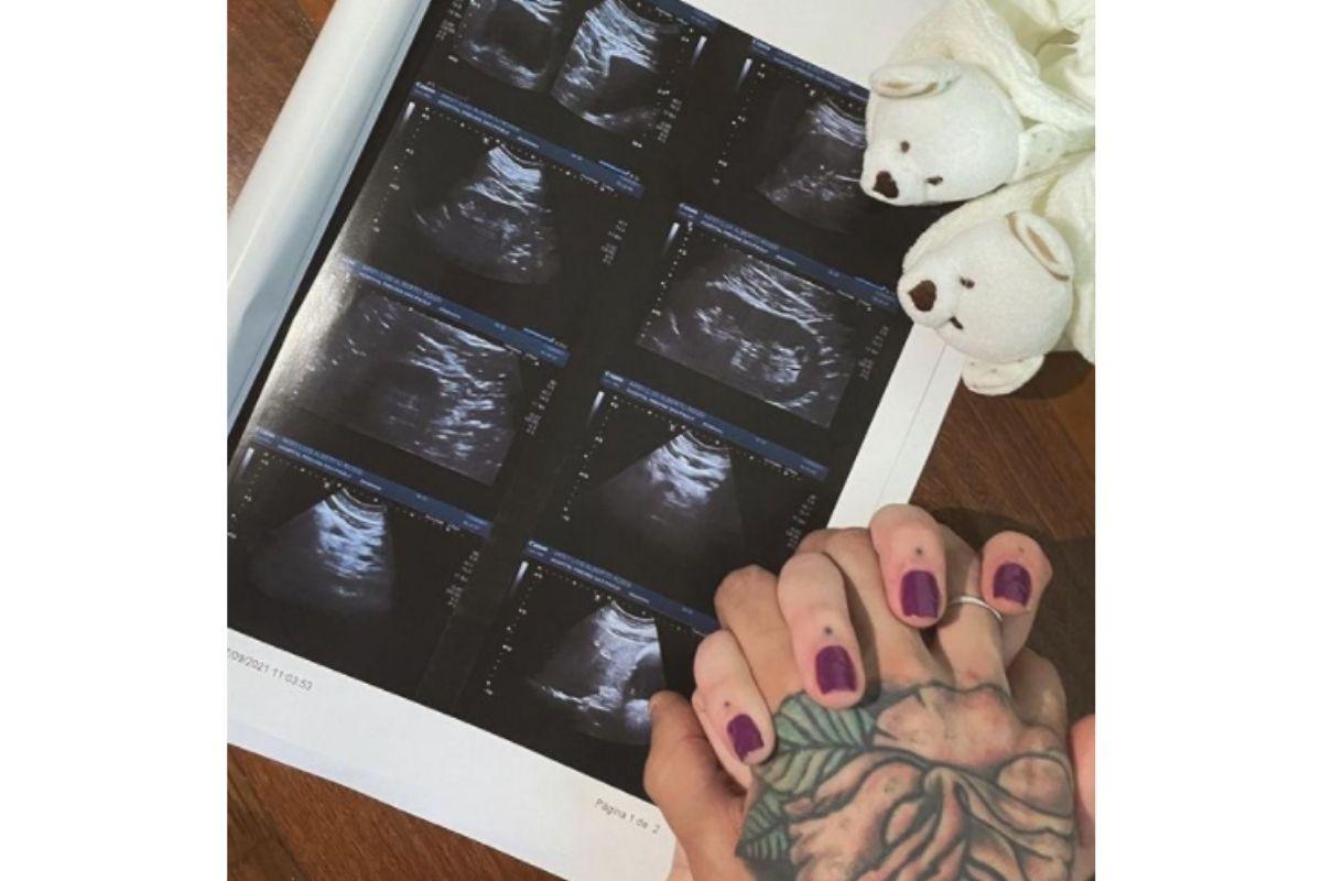 Estou só querendo olhar pra sua cara e te tratar como um igual, você vai ser gigante… Vem tranquilo filhote ou filhota seus pais tão louco pra bagunça tudo com você já”, escreveu o Mc na publicação.