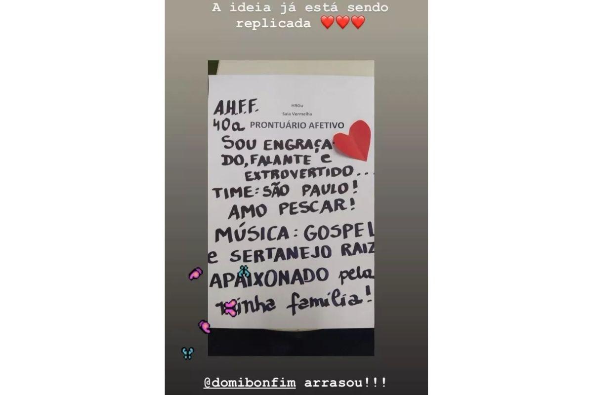 Sim! Todos os pacientes intubados por complicações e agravamento do Coronavírus no hospital, ganharam prontuários personalizados que iam além das informações clássicas, como nome, idade, sexo e afins. A intenção era lembrar a todos das pequenas coisas que fazem os pacientes sorrirem.