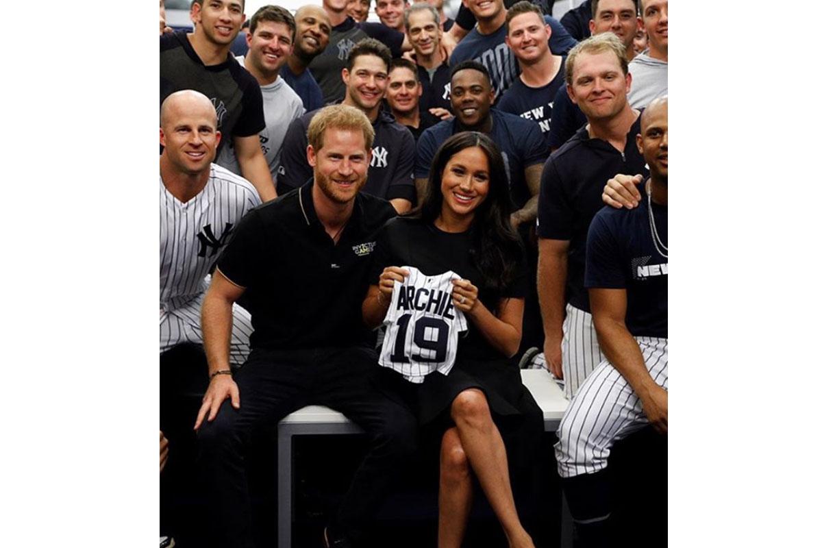 Harry e Meghan Markle foram assistir uma partida de baseball entre os times americanos Yankees e Red Sox. O que era para ser apenas mais uma formalidade acabou se tornando um momento especial para os mais novos pais. Os dois times deram uniformes especiais para o bebê real.