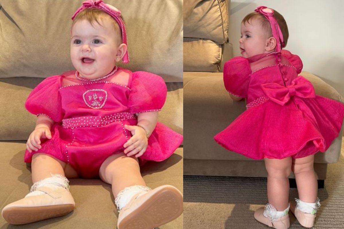 A cantora Thaeme Mariôto postou no Instagram uma sequência de cinco fotos de sua filha caçula Yvi, de 1 ano de idade com um vestido cor de rosa, que remete…