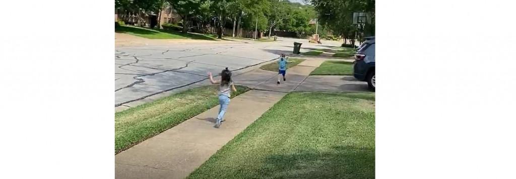 No Texas, nos Estados Unidos, Madison Roboschil, 3 anos, matou a saudade do primo James, também de 3 anos, após a suspensão do isolamento social. A dupla inseparável não se via há mais de dois meses devido a pandemia causada pelo novo coronavírus.