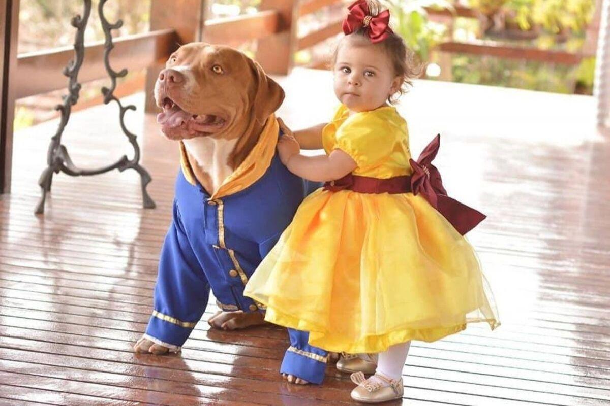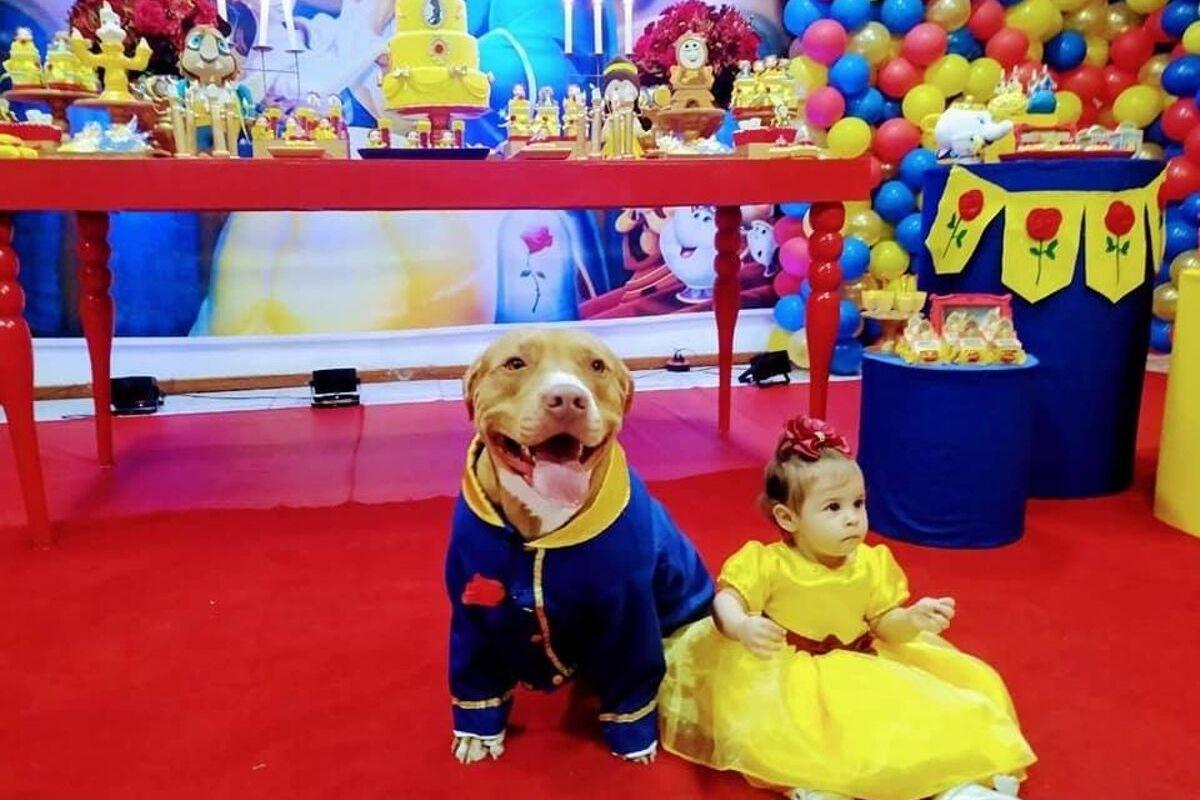 Laura Moura, completou um ano, e surpreendeu todos os convidados com o tema da festa. Pode parecer comum se fantasiar de Bela, da animação da Disney, A Bela e a Fera, mas não quando se tem como par o animal de estimação. Toda a família, que é de Teresópolis, no Rio de Janeiro, sabe da amizade que os dois têm.