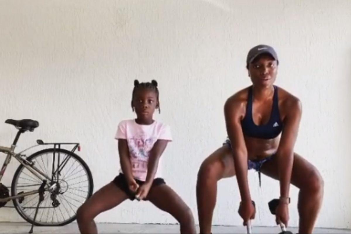 KP Pound está conseguindo seguir a rotina de treinos em casa graças a ajuda da filha de apenas 4 anos! A americana costumava jogar basquete quando mais nova e depois de se tornar mãe continuava frequentando a academia diariamente. Por conta da pandemia, a mãe precisou se adaptar, mas teve todo o apoio de Kynsley, sua nova ‘personal’.
