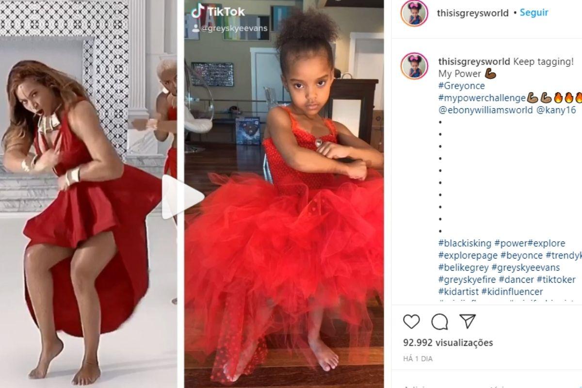 No último domingo, 2 de agosto, a menina apareceu reproduzindo a nova música de Queen B, chamada “My power”. A comparação entre Grey e Beyoncé já gerou quase 100 mil visualizações no perfil da dançarina mirim.