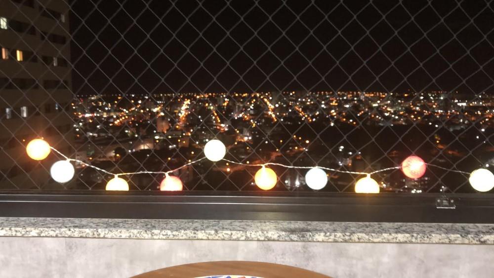 Varanda foi sinalizada com luzes pela mãe para que os vizinhos soubessem qual seria o apartamento — (Foto: Reprodução/ Val Dantas/Arquivo Pessoa/G1)