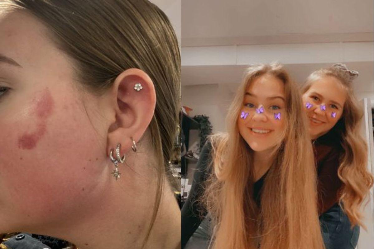 Uma jovem britânica nasceu com uma marca de nascença no rosto após ser chutada pela irmã gêmea dentro do útero. Lexi Walker e sua irmã de 18 anos Kiara foram pressionadas fortemente uma contra a outra antes de virem ao mundo e ela diz que mudou de ideia sobre remover a marca de nascença, pois hoje ela aprendeu a amar isso.