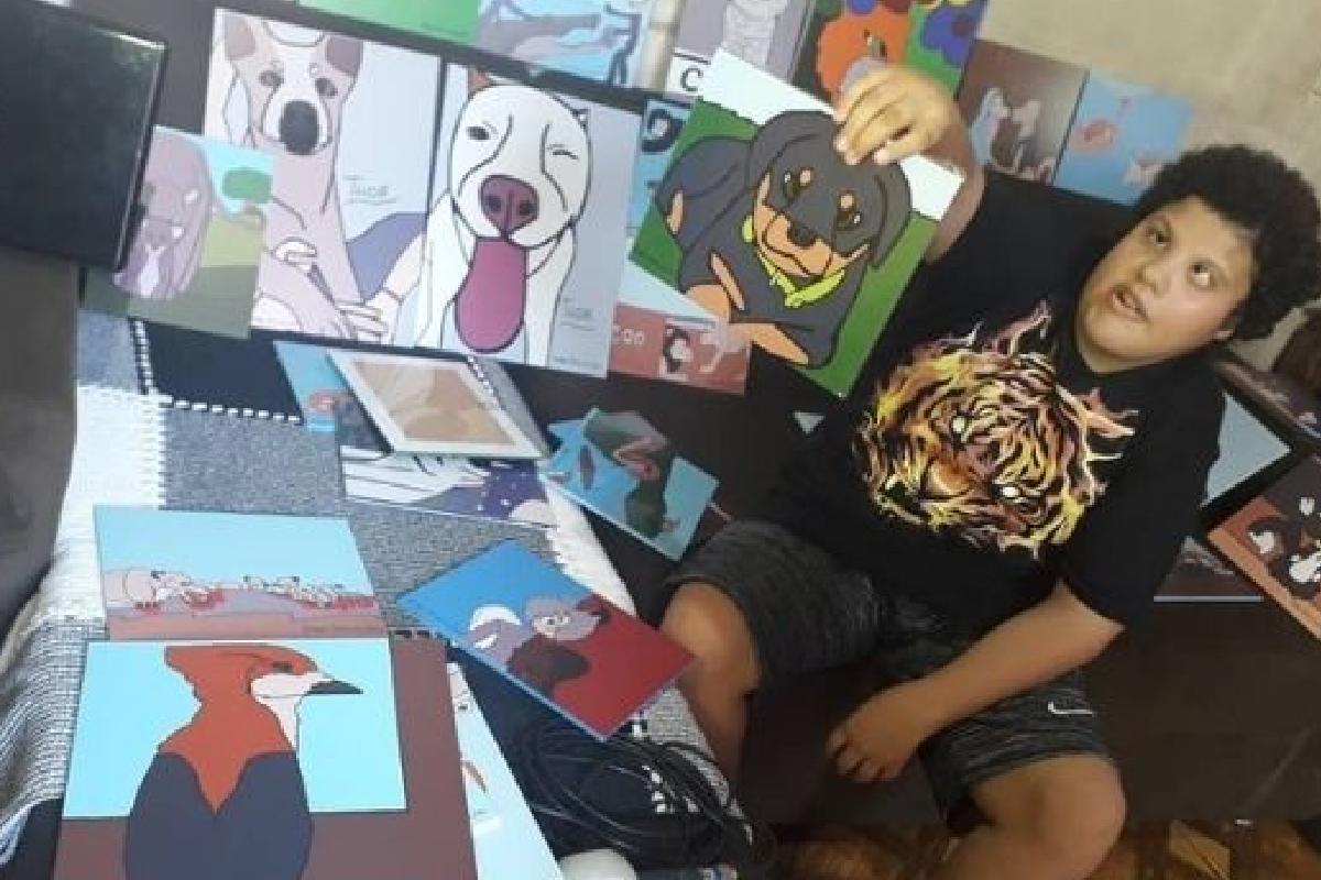 “Nesse ano mesmo ele fez um único desenho. Eu não posso obrigá-lo a desenhar. O que eu queria é incentivar as pessoas a comprarem desenhos que ele já criou. Eu vendo por e-mail. Não tenho dinheiro para investir na impressão”, comenta a mãe.