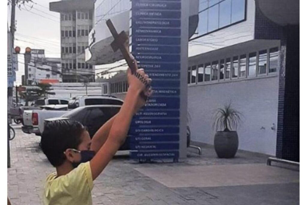 Assim, mãe e filho foram até os hospitais da região, de máscara e com uma cruz de madeira nas mãos. “Ele desceu do carro, fez uns dois minutos de oração com a máscara, voltou novamente para o automóvel e passou álcool em gel”, falou a mãe para o SóNotíciaBoa.