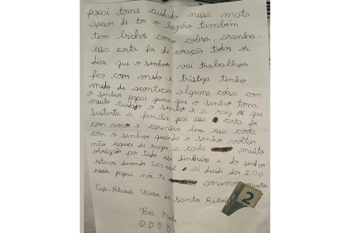 Na carta, Rhauã ainda fala sobre suas angústias. “Tenho medo de acontecer alguma coisa com o senhor. Papai, quero que o senhor tome muito cuidado, o senhor é a raiz que sustenta a família. (…) Nós te amamos muito”, completou.