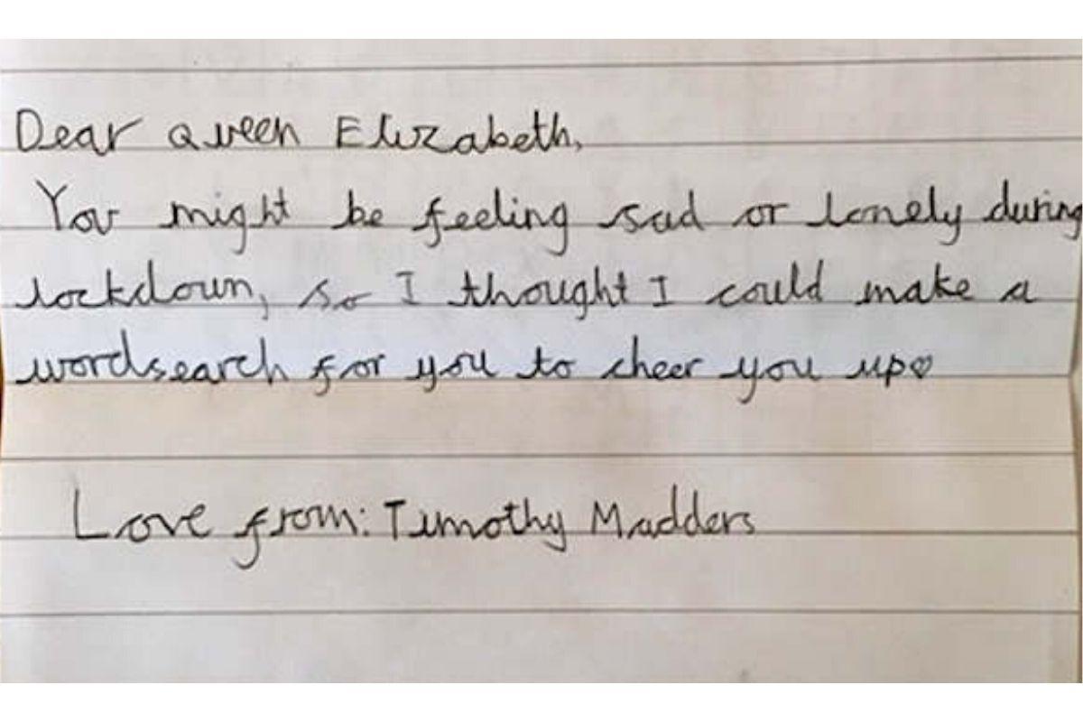 Um menino de 7 anos criou um quebra-cabeça e um caça-palavras para dar de presente para a Rainha Elizabeth II, na Inglaterra. Timothy Madder estava preocupado com o tédio que a rainha poderia sentir durante a quarentena e resolveu ajudar enviando para o palácio de Windsor as suas criações. O que ele e nem a mãe dele, Jo Madder, esperavam era receber uma resposta.