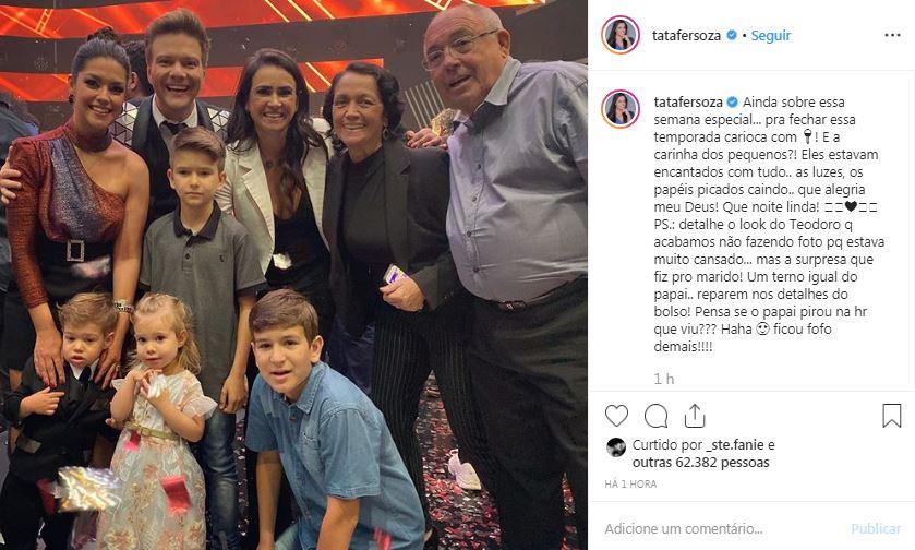 Os seguidores adoraram a surpresa que a atriz fez e deixaram muitos comentários elogiando. “Que pena que não deu pra fotografar, mas ficou lindo!”, disse uma seguidora. “Eu adorei quando vocês apareceram no programa, sou fã dessa família“, comentou outro fã. “Adorei a foto em família, Tata!”, disse outra seguidora.