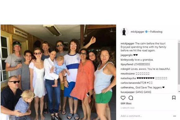 A gente sabe que são muitos filhos, então é difícil Mick Jagger conseguir reunir a família em uma foto. O cantor da banda Rolling Stones compartilhou na sua página do Instagram um clique no qual aparecem alguns de seus filhos, entre eles Lucas Jagger, fruto do relacionamento que ele teve com a apresentadora Luciana Gimenez. “A calma antes da turnê! Curti passar tempo com a minha família antes de cair na estrada de novo”, escreveu na publicação.