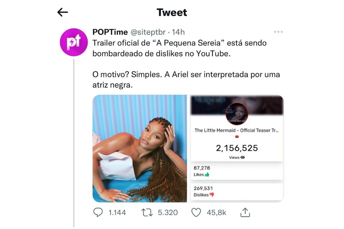 O público em sua média de 25 a 30 anos, segundo o portal N1entreter, está reclamando que a protagonista, vivida por Halle Bailey, não tem traços da Ariel e não está nos ‘padrões’ exigidos, alterando a história original da princesa do fundo do mar.