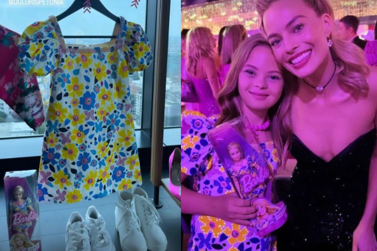 Sofia ganhou o look personalizado da grife infantil ‘Dolores Petunia’. Nas redes sociais, a modelo compartilhou um vídeo em que aparece se maquiando, além de vários registros da première que também marcou presença. Dentre eles, o momento em passa pelo ‘pink carpet’, ou mais conhecido como tapete pink do evento e posa para uma foto ao lado de Margot Robbie, protagonista do filme.
