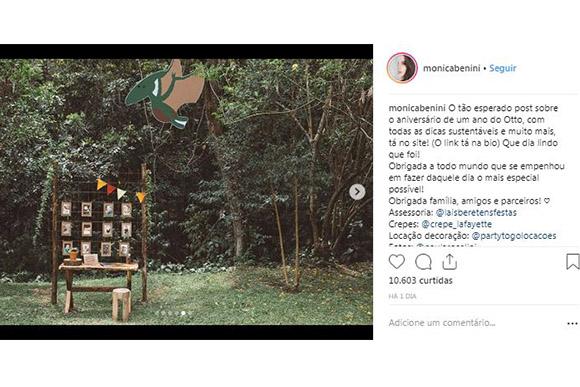 “O tão esperado post sobre o aniversário de um ano do Otto, com todas as dicas sustentáveis e muito mais. Que dia lindo que foi! Obrigada a todo mundo que se empenhou em fazer daquele dia o mais especial possível! Obrigada família, amigos e parceiros!”, escreveu na publicação.