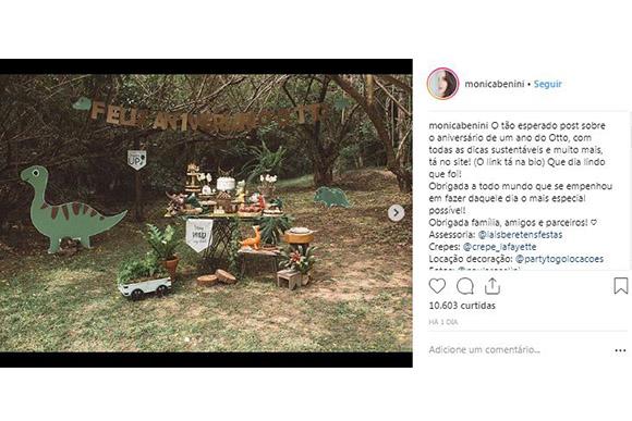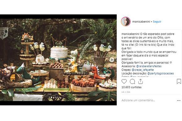 Monica também compartilhou com seus seguidores essa semana fotos do primeiro aniversário de Otto. A festa foi com o tema de selva e dinossauros, que está super em alta entre as crianças.