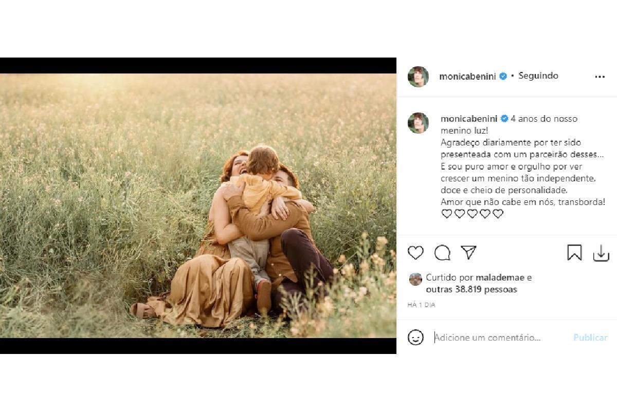 Monica Benini compartilhou uma foto da família para celebrar 4 anos do filho