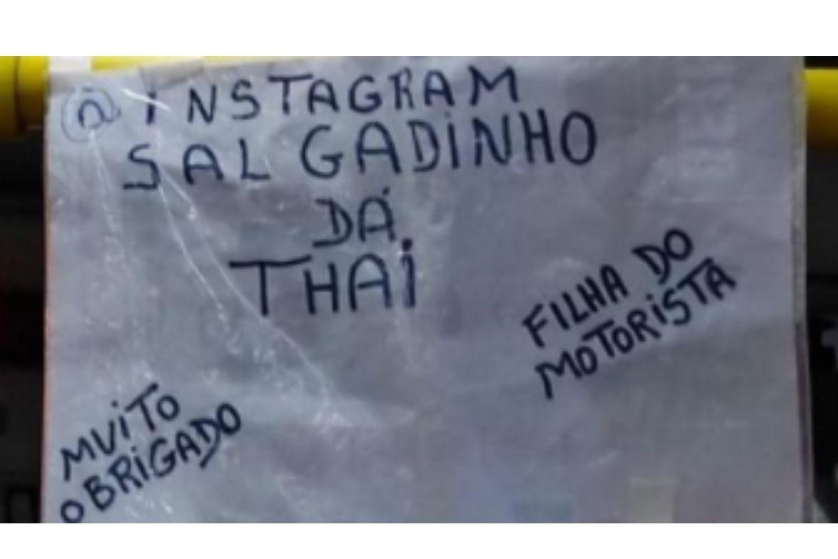Em um cartaz improvisado colado logo na entrada do veículo, Seu Tarciso escreveu, “@ instagram Salgadinhos da Thai”. Além disso, ainda acrescentou, “Filha do motorista; Muito obrigada”. A menina ganhou mais de 30 mil seguidores com a ideia do pai, e se emocionou.