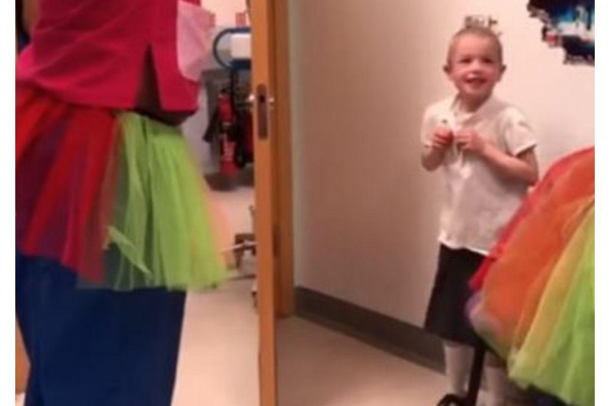 Foi então que veio a ideia de dançar no quarto dela! Os médicos Baylon Kamalarajan e Emma Maunder vestiram tutus coloridos e foram na ponta dos pés até o quarto para a apresentação surpresa. O vídeo do momento foi compartilhado diversas vezes no Facebook e Instagram. “Quando Izzy, louca por balé, veio a nossa Clínica Infantil para seu tratamento de câncer na sexta-feira, dois integrantes da equipe a surpreenderam com uma rotina muito especial”, escreveu o Worcester Royal Hospital no Facebook.