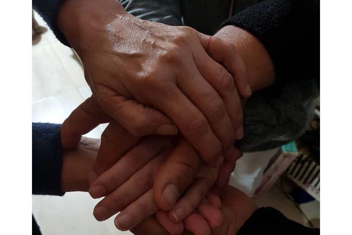 Mãe e filha registraram o momento em que deram as mãos pela primeira vez (Foto: Reprodução/ The Sun)