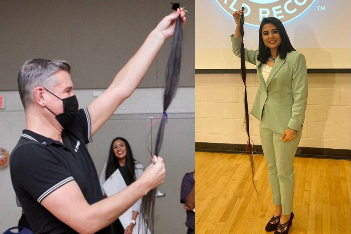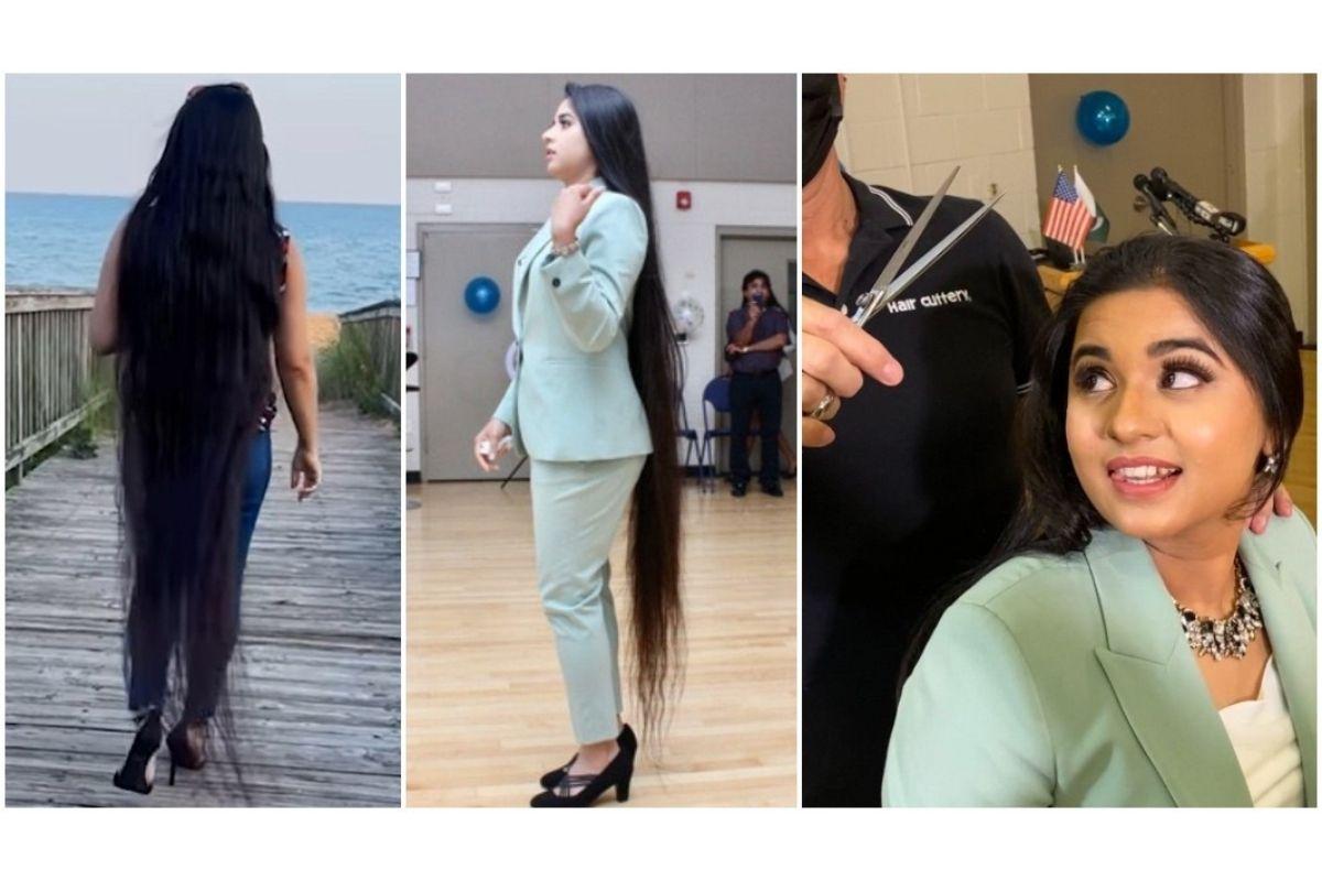 Zahab Khan, 31, mora no Paquistão e recentemente bateu o recorde de cabelo mais doado por um indivíduo, foram 155 cm. A jogadora profissional de squash mora na Virgínia, nos Estados Unidos, contou que ficou 18 anos sem tocar no cabelo, e era conhecida como a “atleta de cabelo mais comprido”