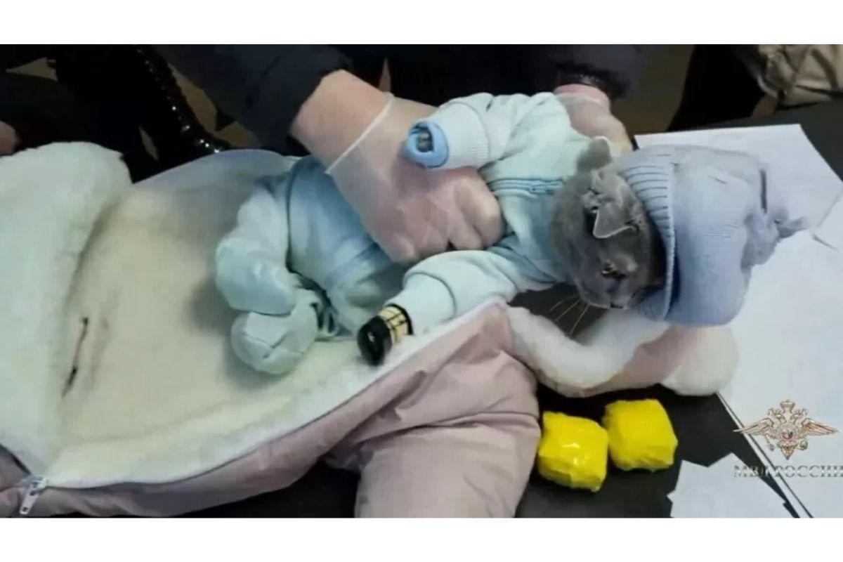 Uma mulher tentava se passar por uma mãe quando foi presa em um resort na Rússia. O que chamou atenção é que ela estava com um gato vestido de bebê, isso para tentar vender drogas, que estavam escondidas dentro da roupa que foi colocada no felino.