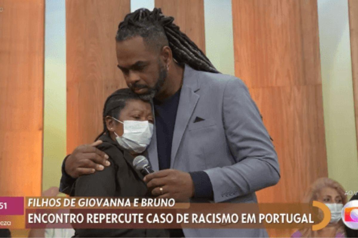 Após reproduzir um trecho da entrevista dada por eles ao Fantástico, em que o casal fala sobre o momento em questão, quando uma mulher atacou com falas racistas as crianças e alguns turistas angolanos que estavam em um restaurante de Portugal, o apresentador Manoel Soares percebeu uma mulher em prantos na plateia, o que o fez se levantar imediatamente e ir até a mulher para abraça-la. Confira o momento: