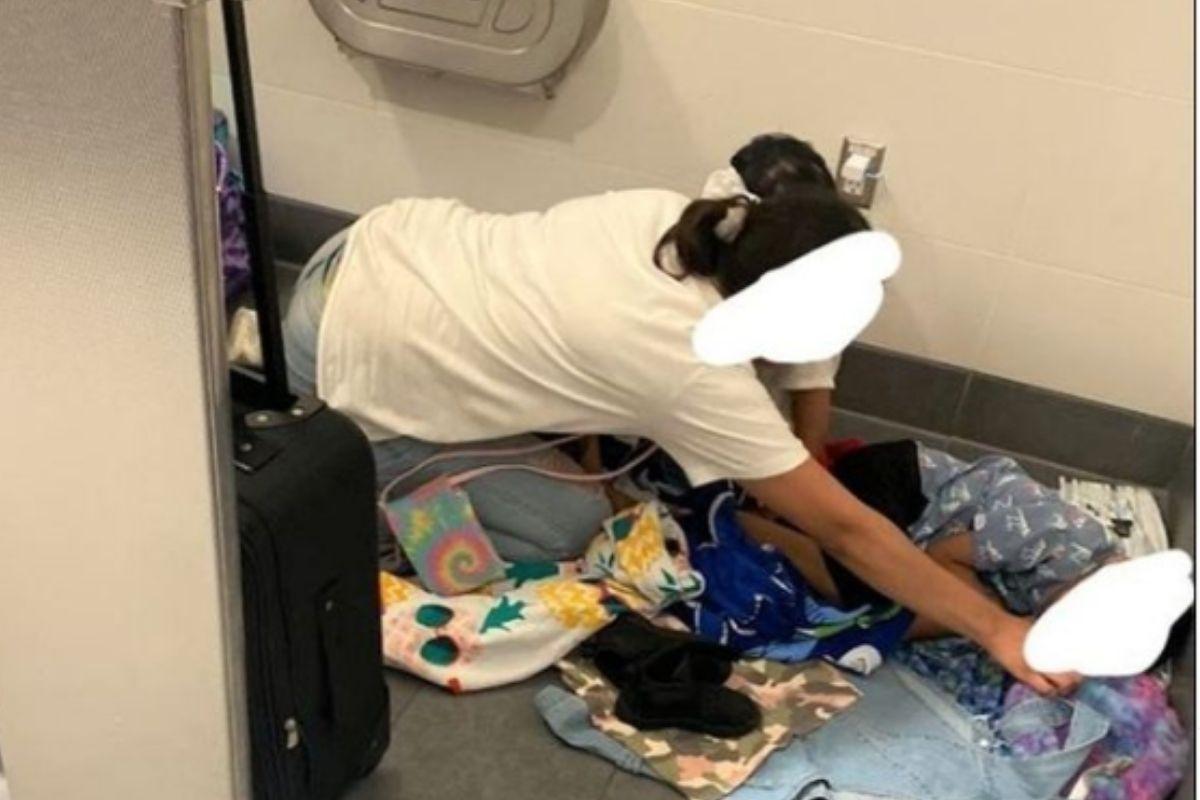 Após a mãe dizer que não teria onde ficar, a mulher tomou uma atitude: “Eu perguntei se poderia pagar por um hotel até amanhã e ela parou de chorar e abriu a porta da cabine”. Foi nesse momento que veio a surpresa: a mãe não estava sozinha, ela estava com seus filhos bebês dormindo no banheiro e que também teriam que passar a noite por lá.