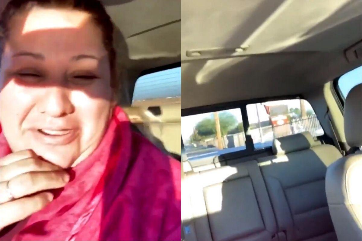 Aos risos e gargalhadas ela olha para o banco de trás do carro e tenta entender a situação. O vídeo viralizou nas redes sociais e intrigou muitas pessoas.