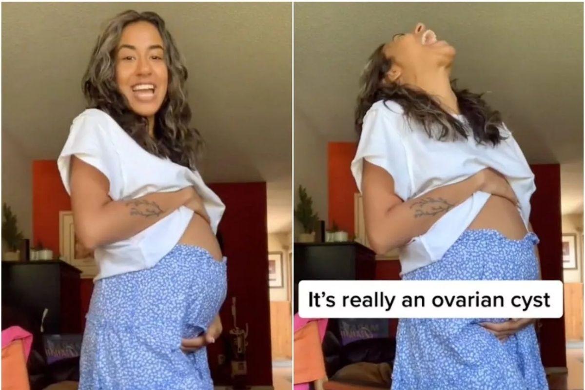 Uma mulher viralizou no TikTok recentemente após postar um vídeo explicando como um cisto no ovário mudou totalmente a aparência do estômago dela. Raquel Rodriguez, 24, de Minnesota, mostrou a barriga de lado, brincando que parecia grávida de nove meses. Ela então revelou que a protuberância era devido ao cisto.