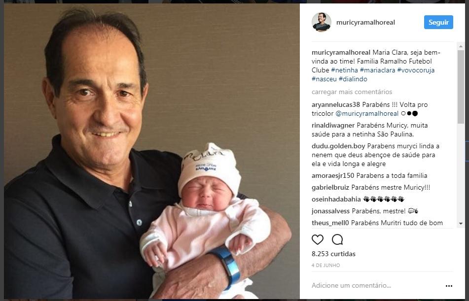 Assim que ela nasceu, o ex-treinador do São Paulo Futebol Clube, publicou uma foto carregando a neta, se confessando avô coruja e desejando que Maria Clara fosse muito bem vinda.