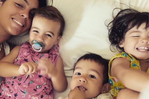 Georgina Rodriguez, namorada do Cristiano Ronaldo, adora compartilhar sua rotina nas redes sociais e sempre que pode mostra um pouco mais do dia a dia. Na terça-feira, dia 3 de julho, a influencer publicou uma foto em seu perfil pessoal ao lado dos filhos, fruto do relacionamento com o jogador do Juventus. Os gêmeos, Eva e Matteo estão com dois anos e Alana, a caçula, que tem só um. “Felicidade com as minhas vidas”, escreveu a modelo na legenda do Instagram. Olha só: