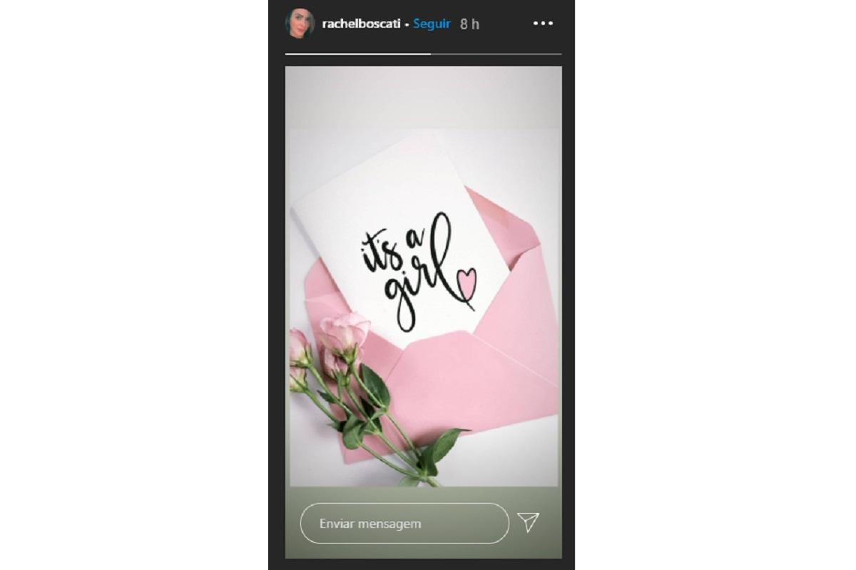 Neste domingo, Rachel revelou que está grávida de uma menina! Em um post no Instagram Stories, a empresária postou a imagem de um envelope com a mensagem “É uma menina” em inglês.